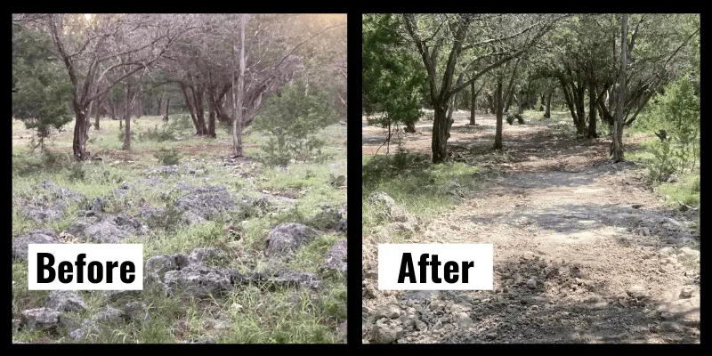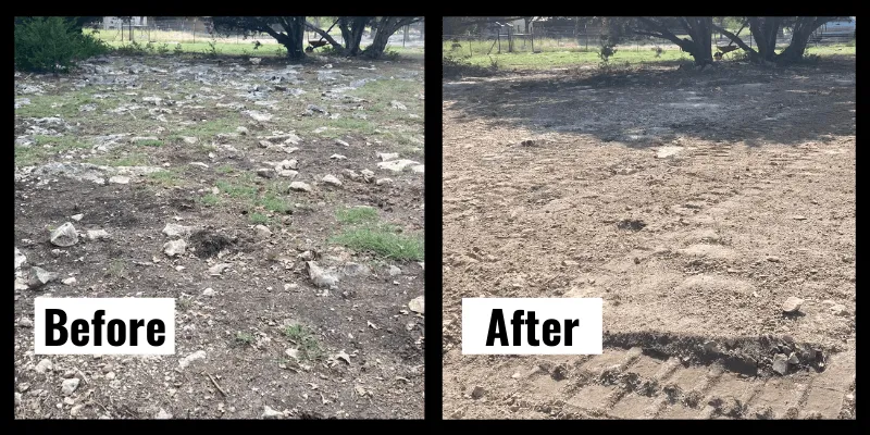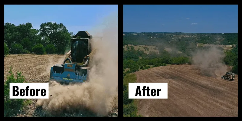 With Our Equipment, we're able to transform those overabundant, Hill Country rock and turn it into finer material which is then mixed back into the soil - creating usable land for your homestead or commercial site.